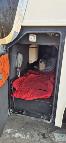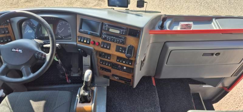 : klimatyzacja, WC, lodówka, kabina sypialna, oświetlenie indywidualne, nawiewy dyszowe, fotele odchylane, podnóżki, stoliczki, siateczki, ABS, ASR, tempomat, retarder, telefon, CD, mikrofon, radio, regulacja wysokości nadwozia, podwójne szyby boczne, wspomaganie kierownicy, elektryczne lusterka, ogrzewanie stacjonarne, DVD, hak holowniczy, ESP