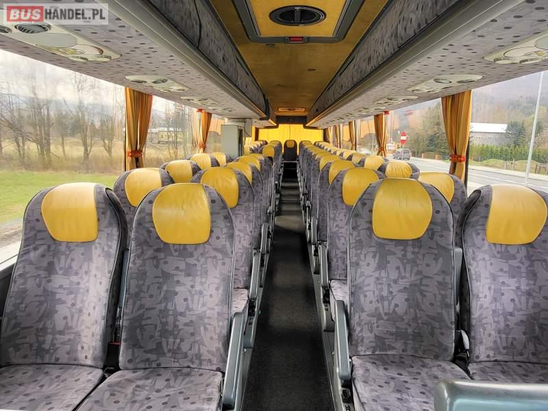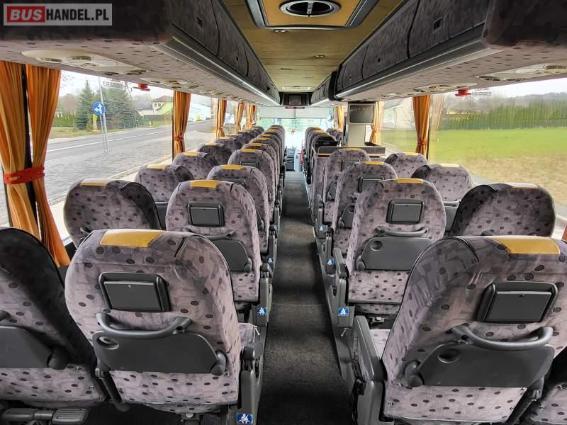 : klimatyzacja, video, WC, lodówka, caffebar, kabina sypialna, oświetlenie indywidualne, nawiewy dyszowe, fotele odchylane, podnóżki, stoliczki, siateczki, ABS, ASR, tempomat, retarder, CD, mikrofon, radio, wyświetlacz matrix, regulacja wysokości nadwozia, centralny zamek, podwójne szyby boczne, wspomaganie kierownicy, aluminiowe felgi, elektryczne lusterka, ogrzewanie stacjonarne, DVD, ESP