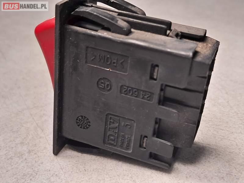 Klawisz, przycisk, włącznik świateł awaryjnych MAN, DAV nr 24 602, czerwony klawisz z symbolem trójkąta, 10 PINów Sprzedający: