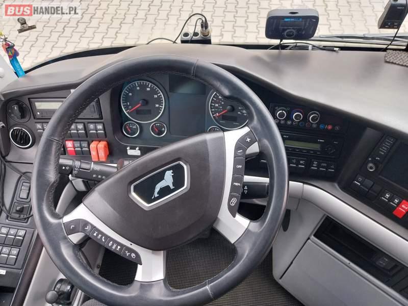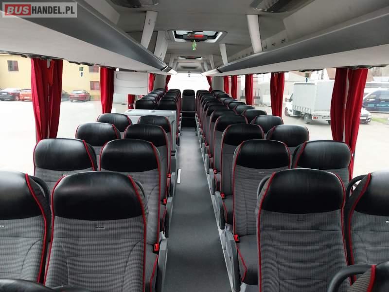 : video, WC, lodówka, kabina sypialna, oświetlenie indywidualne, nawiewy dyszowe, siateczki, ABS, ASR, tempomat, retarder, telefon, CD, podnóżki, stoliczki, mikrofon, klimatyzacja, radio, regulacja wysokości nadwozia, centralny zamek, podwójne szyby boczne, wspomaganie kierownicy, fotele odchylane i rozsuwane, ogrzewanie stacjonarne, ESP