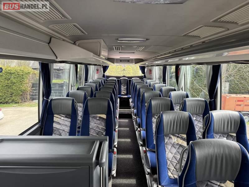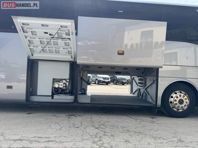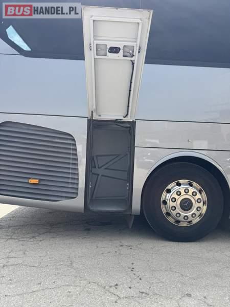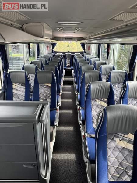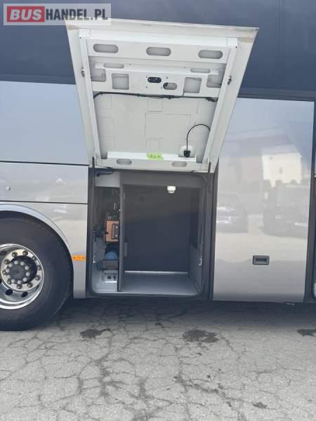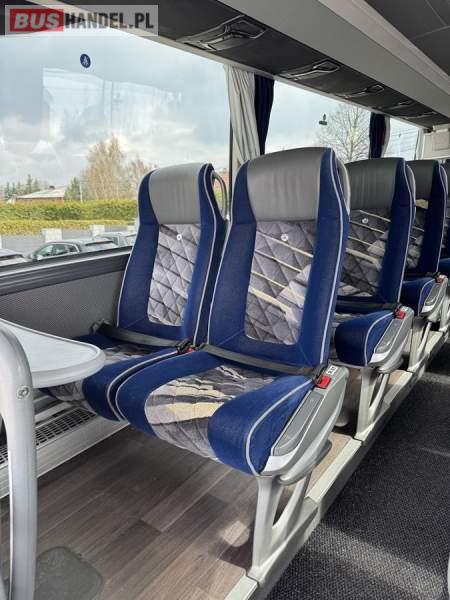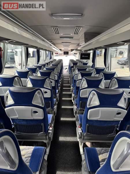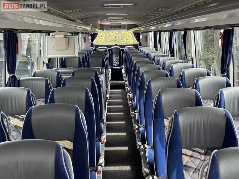 : WC, lodówka, caffebar, kabina sypialna, fotele odchylane, oświetlenie indywidualne, nawiewy dyszowe, siateczki, ABS, ASR, tempomat, retarder, podnóżki, stoliczki, mikrofon, klimatyzacja, radio, sejf, regulacja wysokości nadwozia, centralny zamek, podwójne szyby boczne, elektryczne lusterka, aluminiowe felgi, fotele odchylane i rozsuwane, DVD, ogrzewanie stacjonarne, ESP