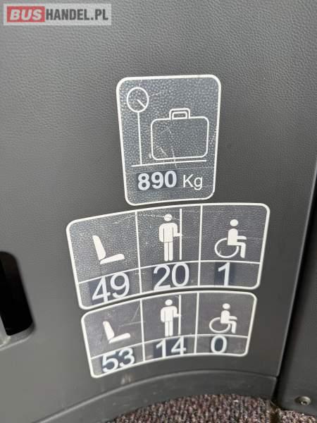 : lodówka, fotele odchylane, oświetlenie indywidualne, nawiewy dyszowe, siateczki, ABS, ASR, tempomat, retarder, podnóżki, stoliczki, mikrofon, klimatyzacja, radio, regulacja wysokości nadwozia, centralny zamek, podwójne szyby boczne, wspomaganie kierownicy, elektryczne lusterka, ogrzewanie stacjonarne