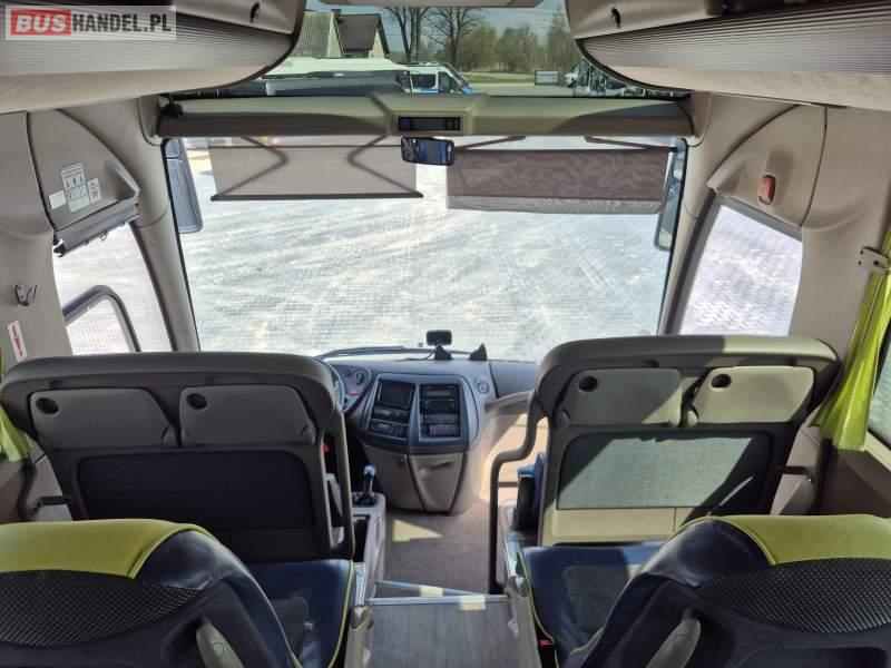 : video, lodówka, fotele odchylane, oświetlenie indywidualne, siateczki, ABS, tempomat, retarder, podnóżki, stoliczki, mikrofon, klimatyzacja, radio, regulacja wysokości nadwozia, centralny zamek, podwójne szyby boczne, wspomaganie kierownicy, elektryczne lusterka, DVD, ogrzewanie stacjonarne