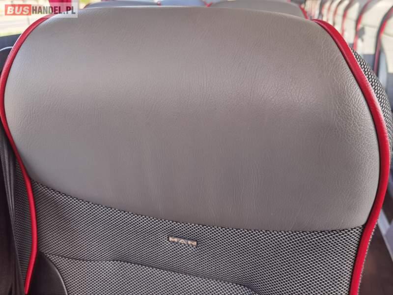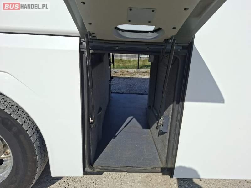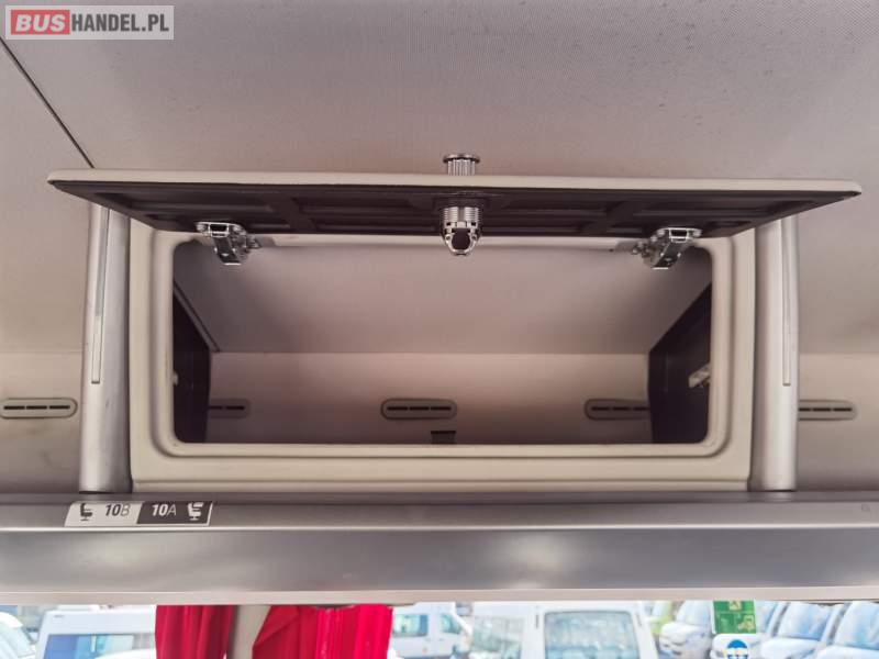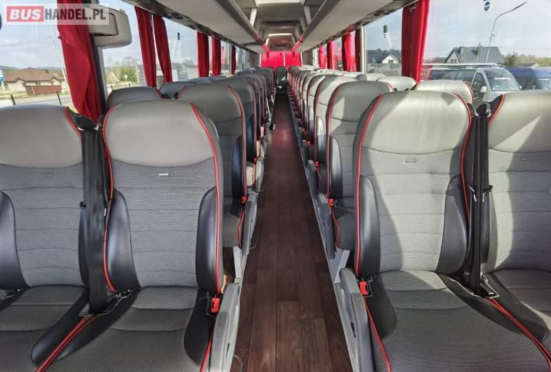 : video, WC, lodówka, fotele odchylane, oświetlenie indywidualne, siateczki, ABS, ASR, tempomat, retarder, nawigacja, CD, stoliczki, mikrofon, klimatyzacja, radio, regulacja wysokości nadwozia, centralny zamek, podwójne szyby boczne, wspomaganie kierownicy, elektryczne lusterka, aluminiowe felgi, DVD, ogrzewanie stacjonarne, ESP
