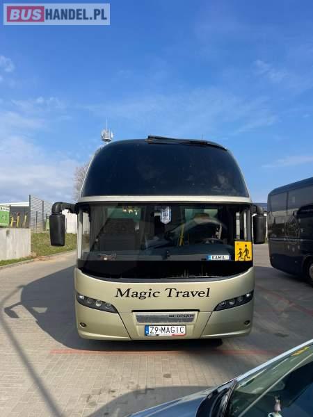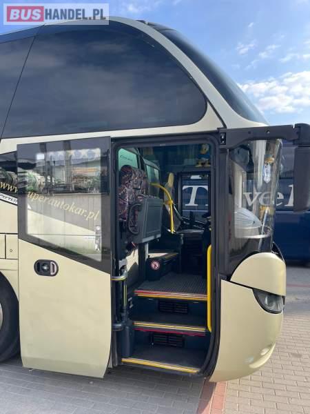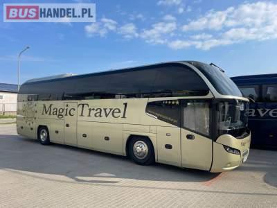 : video, lodówka, kabina sypialna, fotele odchylane, oświetlenie indywidualne, nawiewy dyszowe, siateczki, tempomat, retarder, podnóżki, stoliczki, mikrofon, klimatyzacja, radio, wyświetlacz matrix, sejf, regulacja wysokości nadwozia, podwójne szyby boczne, wspomaganie kierownicy, fotele odchylane i rozsuwane, ogrzewanie stacjonarne