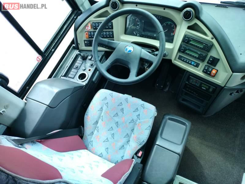 : video, lodówka, fotele odchylane, oświetlenie indywidualne, nawiewy dyszowe, siateczki, ABS, ASR, tempomat, retarder, CD, podnóżki, stoliczki, mikrofon, klimatyzacja, radio, sejf, regulacja wysokości nadwozia, podwójne szyby boczne, wspomaganie kierownicy, elektryczne lusterka, fotele odchylane i rozsuwane, DVD, ogrzewanie stacjonarne, ESP