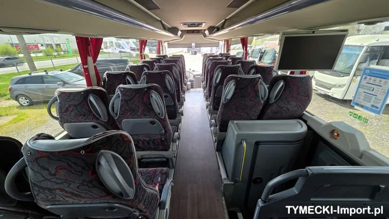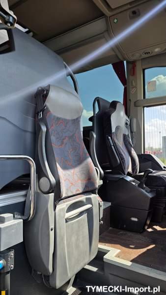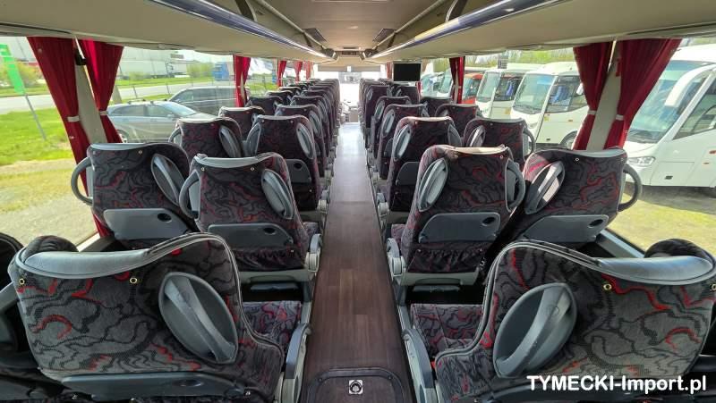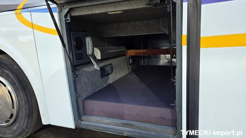 : video, WC, lodówka, kabina sypialna, oświetlenie indywidualne, nawiewy dyszowe, siateczki, ABS, ASR, tempomat, retarder, nawigacja, CD, podnóżki, stoliczki, mikrofon, klimatyzacja, radio, regulacja wysokości nadwozia, podwójne szyby boczne, wspomaganie kierownicy, elektryczne lusterka, fotele odchylane i rozsuwane, DVD, ogrzewanie stacjonarne, ESP