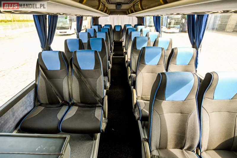 : WC, lodówka, caffebar, oświetlenie indywidualne, nawiewy dyszowe, siateczki, ABS, ASR, tempomat, retarder, CD, podnóżki, stoliczki, mikrofon, klimatyzacja, radio, wyświetlacz matrix, sejf, regulacja wysokości nadwozia, centralny zamek, podwójne szyby boczne, wspomaganie kierownicy, elektryczne lusterka, fotele odchylane i rozsuwane, DVD, ogrzewanie stacjonarne, hak holowniczy, ESP