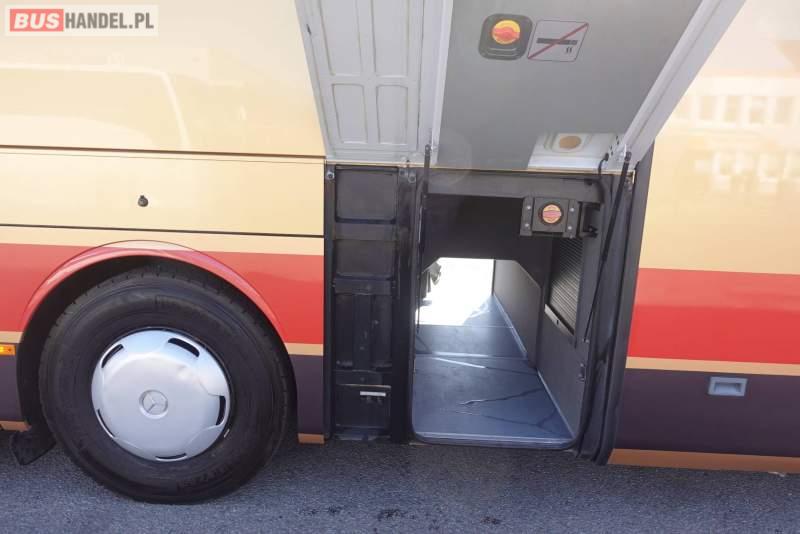 : video, WC, lodówka, caffebar, kabina sypialna, fotele odchylane, oświetlenie indywidualne, nawiewy dyszowe, siateczki, ABS, ASR, tempomat, retarder, CD, podnóżki, stoliczki, mikrofon, klimatyzacja, radio, regulacja wysokości nadwozia, centralny zamek, podwójne szyby boczne, wspomaganie kierownicy, elektryczne lusterka, fotele odchylane i rozsuwane, DVD, ogrzewanie stacjonarne, hak holowniczy, ESP