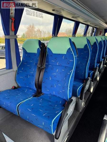 : fotele odchylane, oświetlenie indywidualne, nawiewy dyszowe, siateczki, ABS, ASR, tempomat, retarder, podnóżki, stoliczki, mikrofon, klimatyzacja, regulacja wysokości nadwozia, centralny zamek, podwójne szyby boczne, wspomaganie kierownicy, elektryczne lusterka, ogrzewanie stacjonarne