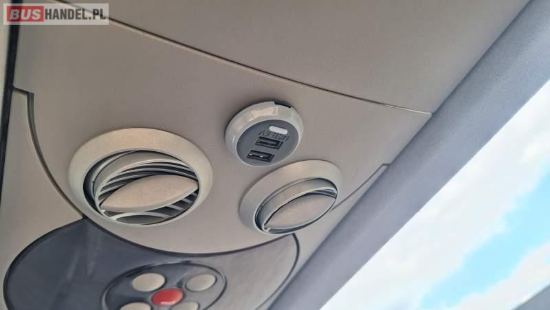 : video, WC, lodówka, kabina sypialna, oświetlenie indywidualne, nawiewy dyszowe, siateczki, ABS, ASR, tempomat, retarder, CD, podnóżki, stoliczki, mikrofon, klimatyzacja, radio, regulacja wysokości nadwozia, centralny zamek, podwójne szyby boczne, wspomaganie kierownicy, elektryczne lusterka, fotele odchylane i rozsuwane, DVD, ogrzewanie stacjonarne, ESP