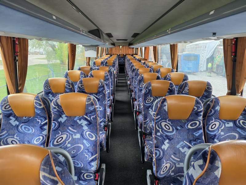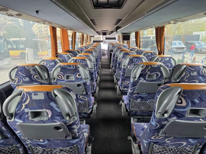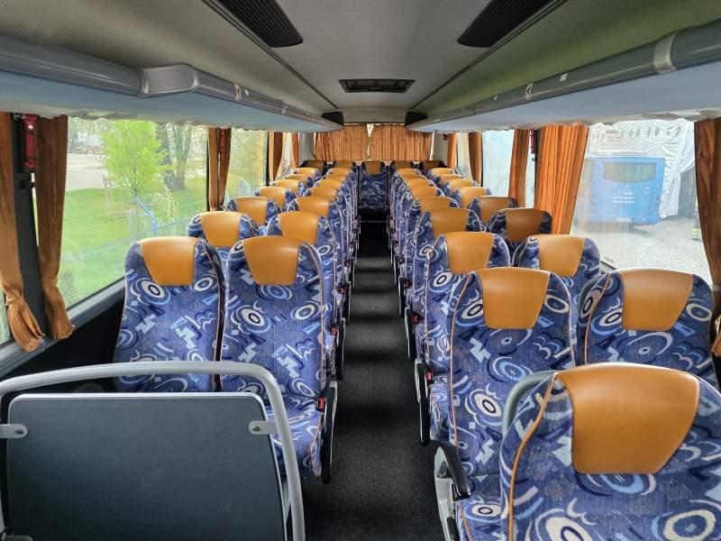 : video, WC, lodówka, fotele odchylane, oświetlenie indywidualne, nawiewy dyszowe, siateczki, ABS, ASR, tempomat, retarder, nawigacja, CD, podnóżki, stoliczki, mikrofon, klimatyzacja, radio, regulacja wysokości nadwozia, centralny zamek, podwójne szyby boczne, wspomaganie kierownicy, elektryczne lusterka, fotele odchylane i rozsuwane, ogrzewanie stacjonarne, ESP